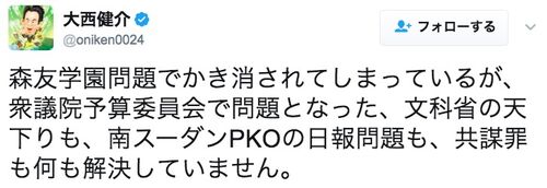 『森友学園』の問題ばかりが注目され、国会で重要案件の審議に滞りが出ていると民進党・大西健介議員がツイートしています。 ですが、この主張は筋違いと言えるでしょう。なぜなら、国会で『森友学園』の問題を取り上げ、騒ぎ続けたのは野党だからです。 他…