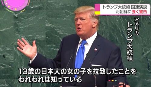 日頃から「外交での問題解決」を訴える左派ほど、安倍政権の成果を称えなければならないことが発生しました。国連総会で演説をしたトランプ大統領が北朝鮮を強く非難した際、拉致被害者の横田めぐみさんに言及したと NHK が報じています。 これは外交的なア…