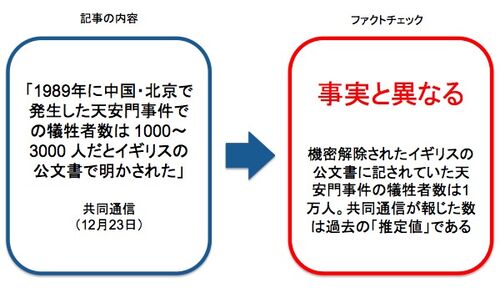 イギリスの公文書が公開され、1989年に中国で起きた天安門事件の犠牲者数が明らかになりました。ただ、共同通信が犠牲者数を意図的に少なく報じており、虚偽報道を振りまく事態が起きています。